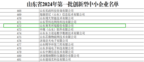 近日,山東省工業(yè)和信息化廳公布了“關于公布山東省2024年度第一批創(chuàng)新型中小企業(yè)的通知”。山東奧美環(huán)境股份有限公司(以下簡稱奧美環(huán)境)榮譽上榜。